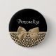 Eine schicke und elegante hellbraune und schwarze Jaguar-Drucktaste mit einem sandfarbenen Band, die in einen niedlichen Bogen gebunden ist. Personalisieren Sie diese stilvolle Etikettenmarke mit dem Namen Ihres Teenagers. Flachdruckbild, nicht eigentlicher Bogen.