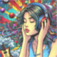 Girl Listing to Music on Headphones Psychedelic Aufkleber