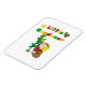 Ein kleines blondes Mädchen schaut hoch, um die Spitze des Maisstals in ihrem Garten wachsen zu sehen, in diesem niedlichen und farbenfrohen Gartendesign auf Bierstühlen, Kissen, Bettdecken, Decken, Pfannkuchen, Tellern, Kissen und vielen anderen Gegenständen.