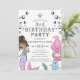 Girls Geburtstagseinladung für jedes Alter mit einem mädchenhaften Design. Kindergeburtstag-Party mit Seestern, Blasen und Wasserfarbe mit Imitaten Glitzer Hintergrund auf der Rückseite.
