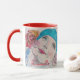 Mädchen mit Rote Rose Beret Wasserfarbe Blume Folral Tasse, mit einem vollständig anpassbaren Namen. Entworfen aus einem meiner originalen Aquarellbilder.