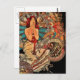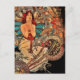 Vintages Mucha-Bild aus dem Jahr 1897 von einer wunderschönen Frau umgeben von Wirbel in Orangetönen mit Ozean hinter ihr.