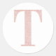 Girl Pale Rose Gold Glitzer Monogram T Runder Aufkleber