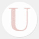 Girl Pale Rose Gold Glitzer Monogram U Runder Aufkleber