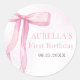 Girl Pink Bow 1. Geburtstag Party Klassischer Rundaufkleber