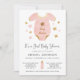 Feiern Sie die zukünftige Mutter eines kleinen Mädchens mit dieser Babydusche-Einladung mit einem Retro-inspiriert pastellrosa und goldene Aquarellfarbe eines Baby-One-Stück-Schnappanzugs, umgeben von rosa und goldenen Aquarellstern. Der Name des Babys ist auf dem Outfit geschrieben (Sie können auch personalisieren oder leer verlassen). "It's a Girl Baby Shower" wird in einem stilvollen zeitgenössischen Drehbuch geschrieben. Eine kleine pastellrosa und goldene Aquarellfarbe einer Babyflasche am Ende der Einladung trennt die Lage des Party und die UAWG. Sie können die Duschdetails und die Registrierungsinformationen einfach personalisieren.