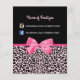 Erfahren Sie mehr über Ihre Schönheitssalon-Boutique mit diesen gürtelrosa und schwarzen Leoparden, die Social Media-Flyer mit einem niedlichen Hot-Pink-Bogen drucken. Dieses Design eignet sich perfekt für eine Preisliste oder eine Firmenübersicht. Personalisieren Sie, indem Sie den Namen der Beauty-Boutique und Social Media-Informationen. Nicht das richtige Geschäft? Dieses Design wurde als Vorlage erstellt, sodass Sie Ihre persönlichen Informationen einfach dem Anzug Ihres Unternehmens hinzufügen können. Flachbild, NICHT mit einem tatsächlichen Bandbogen angebracht.