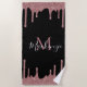 Girly Pink Rose Gold Glitzer Sparkle Tropfens Beach Handtuch mit funkelnd Imitats Glitzer Tropfen und Ihrem individuelle Name und Monogramm auf einem schicken schwarzen Hintergrund. Einfach zu anpassen und perfekt für Ihre mädchenhafte Ästhetik!