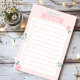 Girly rosa Rose, die Personalisiert ist, Post-it Notizen aufzulisten. Niedliche, gürtnerisch rosa angesagte Deko mit rosa blumengeschmückten Blume und grünen Blätter. Personalisieren Sie dieses benutzerdefinierte Design mit Ihrem eigenen Namen oder Text.