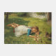 Dieses Design zeigt ein Gemälde des deutschen Künstlers Carl von Bergen (1853-1933). Es zeigt ein süßes junges Mädchen, das an einem sonnigen Tag außerhalb ihres Hauses über das Gras liegt. Sie ist in einem schönen grünen Garten, während sie mit einigen kleinen niedlichen Küken (Baby Hühner) spielt. Die Mutterhenne ist stehend, sich ihre Küken anzusehen. Das Mädchen hält auch ein Sandwich zum Essen. Das Mädchen trägt ein traditionelles Kleid und hat ihr Haar in Ferkeln. Das Originalwerk wurde 1912 gemalt.