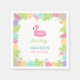 Tropische Blätter und Blume mit Früchten und einem niedlichen Flamingo Float für das perfekte Girl Pool Party!