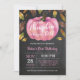 Pumpkin erste Geburtstagseinladung. Rosa, Schwarz und Weiß. Aquarell Pumpkin Blätter. Girl Bday Party einladen. Hintergrund der Tafel. 1. 2. 3. 4. 5. 6. 7. 8. 9. 10. Jedes Alter. Für weitere Anpassungen klicken Sie bitte auf die Schaltfläche "Anpassen" und verwenden Sie unser Designwerkzeug, um diese Vorlage zu ändern.