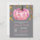 Girl Pumpkin Fall Babydusche Einladung. Rosa und Gary Hintergrund. Herbstdusche Einladung. Girl Baby Dusche einladen. Rosa Orange und Grau.