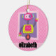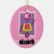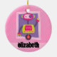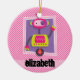 Girl Robot; Rosa und weiße Streifen Keramikornament
