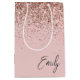 Girl Rose Gold Blush Pink Glitzer Monogram Mittlere Geschenktüte