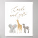 Mit diesem Schild zeigen Freunde und Verwandte, wo sie ihre Karten und Geschenke verlassen haben, mit Goldtypografie und bezaubernden Baby Safari-Tieren