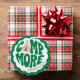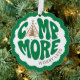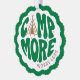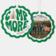 Adorable picture ornament/holiday gift card for someone special involved in girl scouting and/or loves camping too! With a green and white outer borders, and rounded typography with a tent, "Camp More, Worry Less" on the front. And on the back, a rough rounded photo template frame to add your photo, names, and a year, and also bordered with green and white.