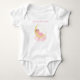 Dieses hübsche Bild zeigt ein schlafendes Baby in rosa Schlafanzug, das sich auf einem halbmondförmigen Mond mit einer weichen Wolkenunterlage, umgeben von gelben Sternen, ruht. Der Text "Geboren, ein Stern zu sein" in blau fügt eine magische Touch hinzu.