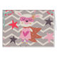 Ein weißer Hasen-Superheld in rosa Maske und Kleid mit Herz, braunem Kap und gestreiften Socken auf grauem und weißem Zickzack Streifen, Rosa, Tiefwein und Rot sowie blaue und rote Bäume auf Produkten für Zuhause, Büro und Privatgebrauch. Dieses niedliche Girl Superhero Bunny Design ist ideal für Kinder und Erwachsene, die Liebe Spaß, farbenfrohe, skurrile Designs!