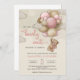 Girl Teddy Bärenblüte Rosa-Braunbällchen Einladung