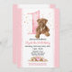 Girl Teddy Bear Wasserfarbenflora 1. Einladung