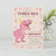 Girl Three-Rex Dinosaur Birthday Invitation.