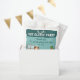 Celebrate your little animal lover’s special day with this girl veterinarian thank you favor bag designed by Destei. The design features a cute cartoon girl veterinarian standing behind a gray examination table with a puppy and a kitten. The illustration is placed at the bottom of the bag against a vibrant teal background.
