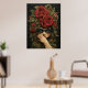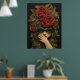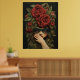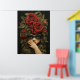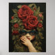 Poster mit einer dunklen, bestickten Illustration eines Mädchens, das eine Brille, Fingerlose Handschuhe und rote Rosen im Haar trägt.