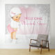 Girl Winter Wunderland Babydusche Hintergrund mit bezauberndem brünettes Baby Girl mit niedlich rosa Schnee Outfit auf einem hübschen Winterwunderland Schnee Hintergrund. Dieses wunderschöne Baby-Duschbanner im Winter lässt sich leicht an den Text Ihrer Wahl anpassen.