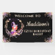Das ist ein zauberhaftes Halloween-Geburtstagsbanner für eine Geburtstagsfeier eines Mädchens. Das Design zeigt Aquarellbilder einer bezaubernden Hexe in einem Blattkranz und Blattwerk in den Ecken, die einen Rahmen bilden. Das wäre perfekt für einen Geburtstag um Halloween Zeit, besonders wenn das Geburtstagsmädchen Hexen, Zauberer und alles, was magisch ist, Lieben. Das Banner kann mit Ihrem eigenen Text personalisiert werden.