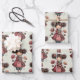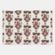 Wrapping paper sheets with a cute retro image featuring a whimsical girl with rosy cheeks and flowers in her hair. Carrying a green frog doll.