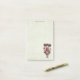 Sticky notes with a cute retro image featuring a whimsical girl with rosy cheeks and flowers in her hair. Carrying a green frog doll.