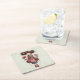 Paper (sturdy pulp board) coasters with a cute retro image featuring a whimsical girl with rosy cheeks and flowers in her hair. Carrying a green frog doll.