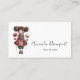 Business cards with a cute retro image featuring a whimsical girl with rosy cheeks and flowers in her hair. Carrying a green frog doll.