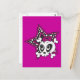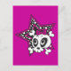 Niedlicher Emo-Stil Schädel und Kreuzknochen mit Bogen ist Set auf einem lila und schwarzen Stern mit weißen Polka Punkten.