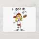 Ein blondes Strichmännchen-Baseballspieler fängt den Ball in ihrem Baseballhandschuh und der Text lautet: "Ich Got es!" auf Mädchen Baseball Design-T - Shirt, Hoodies, Tasse, Karten, Aufkleber, Schlüsselanhänger, und andere Baseball-Spieler Bekleidung und Geschenke.