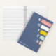 Ein blaues Notizbuch für Mädchen mit einem farbigen Text, der "HINWEISE" und einen mit Monogramm Vollnamen enthält.