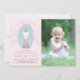Diese niedliche Geburtstagsfeier lädt mit einem illustrierten, für ein Party gekleideten und von Blumen und Konfetti gerahmten Hasen zum Verweilen ein. Der rosa und lila Geburtstag lädt zum Vergnügen der Typografie und zum Foto des Geburtstags ein. Personalisieren Sie die Sonnenkarte mit den Foto- und Geburtstagsdetails Ihres Kleinen. Die Karte kann für jedes Geburtstagsjahr angepasst werden. Auf der Rückseite der Lobby stehen grün-weiße Polka-Punkte.