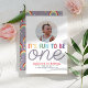 Celebrate your little one’s milestone with this adorable “It’s Fun to Be One” 1st birthday invitation. This playful design features colorful retro-style lettering, space to add your child’s photo on the front, and a coordinating purple back with rainbows and star details. Perfect for a modern girl’s first birthday party, retro rainbow theme, or minimalist one year old celebration. Easily personalize with your child’s name and all the party details.