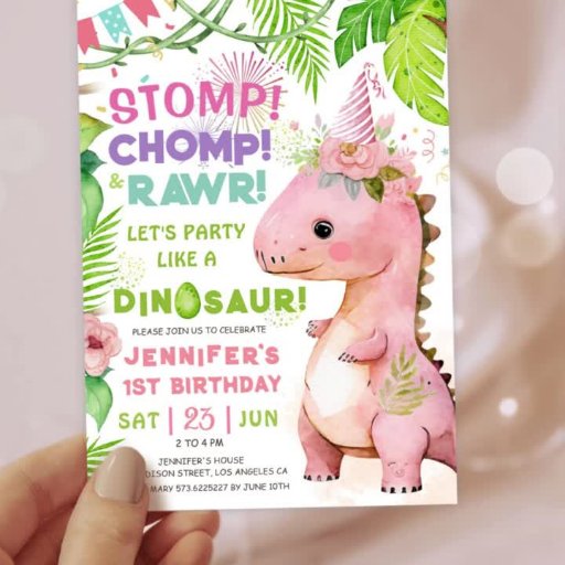 Girls Pink Dinosaur 1st Birthday Party Designt von H-Art Studio Design
