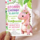 Girls Dinosaur 1. Geburtstag Party Niedlich Rosa D Einladung