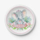 Mädchen Elefanten Duschpapier-Teller mit bezauberndem Elefanten Baby mit einem rosa Bogen auf einem palmengesäumten verließ. Diese niedlichen Elefanten Baby-Duschpapier-Teller sind einfach an Ihre Veranstaltung angepasst, indem Sie einfach den gewünschten Text hinzufügen. Sie können auch die Hintergrundfarbe dieser bezaubernden Elefanten Babyduschpapier-Teller ändern.