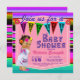 Fiesta Baby Dusche Einladung mit niedlichem Mädchen mit einem farbenfrohen Puebla Kleid auf einem mehrfarbigen serape Hintergrund. Diese bezaubernden Baby Girl Fiesta Babydusche Einladungen sind leicht für Ihre Veranstaltung angepasst, indem Sie einfach Ihre Details hinzufügen.