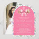 Celebrate her special day with this elegant Girl's First Holy Communion Pink Wildflower Bow Photo Invitation, featuring a delicate pink bow adorned with soft wildflowers for a sweet and timeless look. This customizable design allows you to add your child’s photo and event details, creating a meaningful and memorable keepsake for family and friends. Perfect for a feminine, floral-themed communion celebration with a modern yet classic charm.