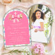 Girl's First Holy Communion Pink Wildflower Bow Einladung