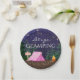 Girl Glamping Geburtstagsfeier Teller mit einem niedlichen rosa Zelt und Lagerfeuer auf einem sternenreichen nächtlichen Waldhintergrund. Diese niedlichen Girls Camping Geburtstagsparty Teller sind leicht für Ihre Veranstaltung angepasst, indem Sie einfach Ihren Text hinzufügen.