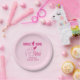 Bringen Sie eine Touch von Charme und Spaß in Ihren Bachelorette Wochenende Wellness-Center mit diesem schönen Papier-Teller. Mit einem skurrilen Design von handgezeichnet Frauenbeinen, die komfortable Hausschuhe tragen, umgeben von Glitzern, und Set vor einem weichen rosa Hintergrund.