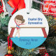 This cute gymnastics girl Christmas ornament features a pretty brunette gymnast girl standing in front of a beam. She is wearing a red leotard and smiling to next above her name in blue cursive script. Perfect holiday present for a child who loves gymnastics.