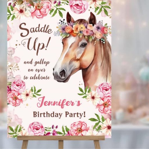 Girls Horse 3. Geburtstag Blumensattel Up! Einladung