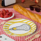 Creative Girls Lacrosse themed Party oder Sportereignis Teller mit Girls lax stick und gelben Streifen.